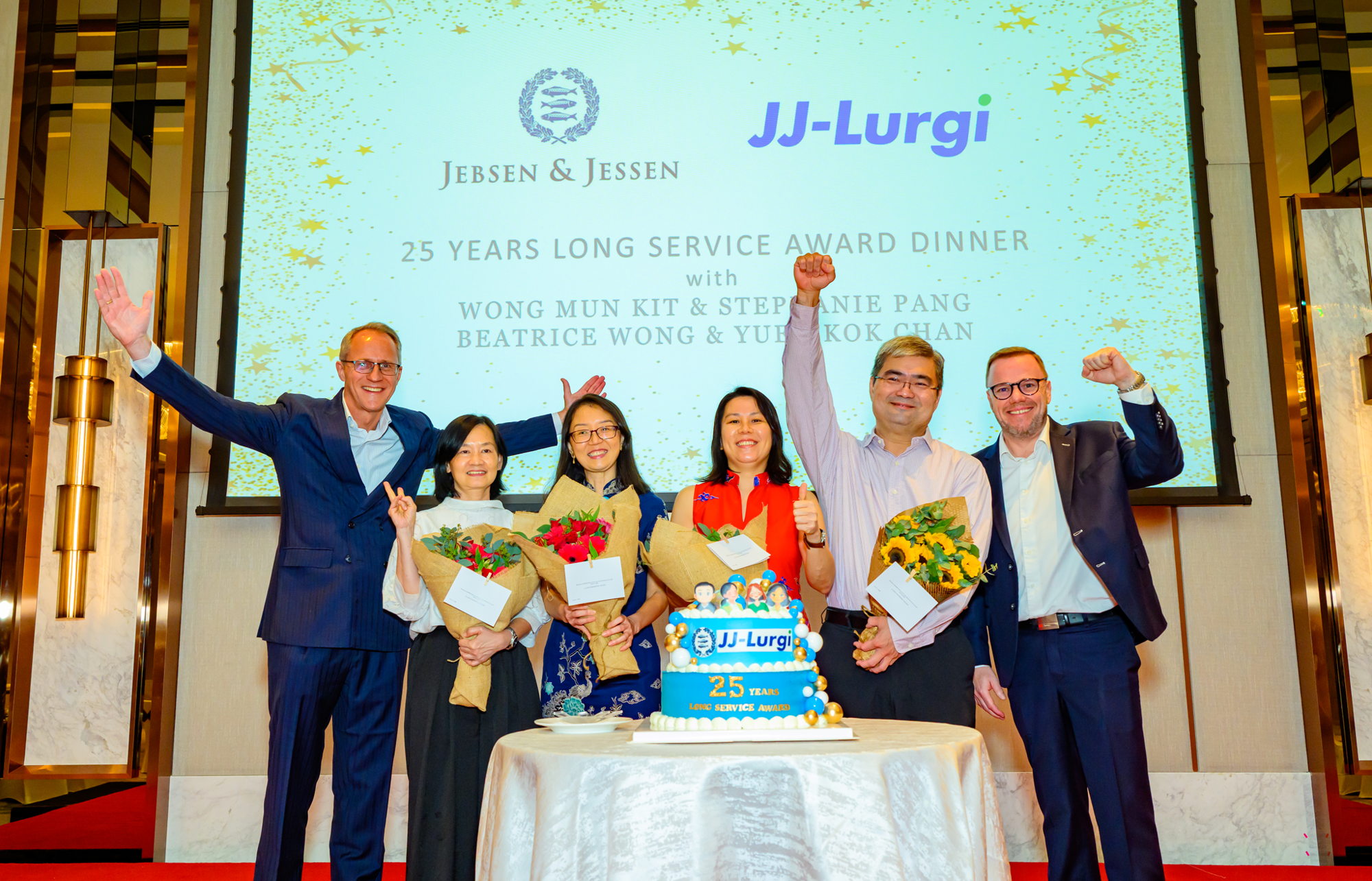 At JJ-Lurgi Malaysia, four remarkable employees — Mun Kit Wong, Stephanie Pang, Kok Chan Yuen and Beatrice Wong — were honoured with the 25-year Long Service Award.